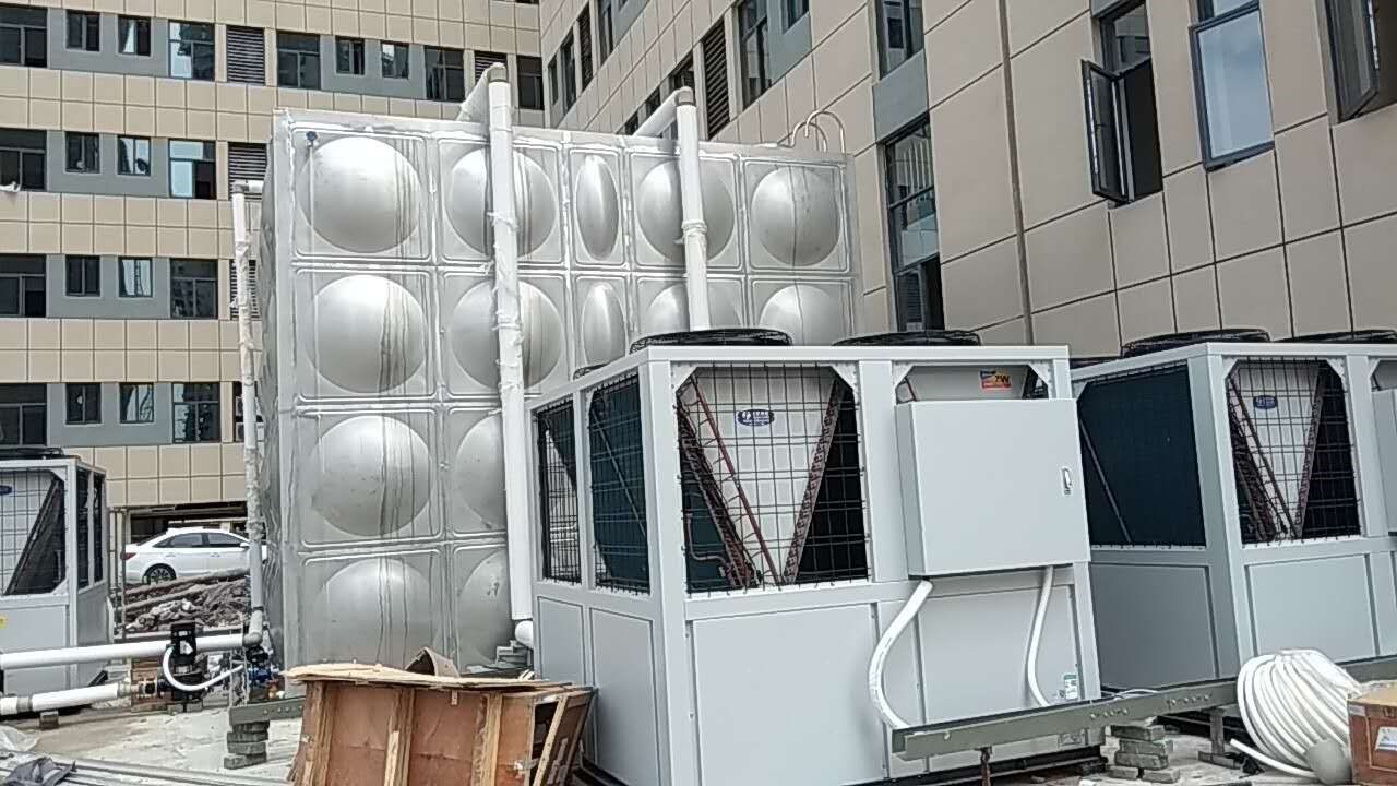 湖北工業大學采用15臺天舒熱能熱泵熱水機組,為上萬學生供洗浴熱水,日提供熱水400余噸。