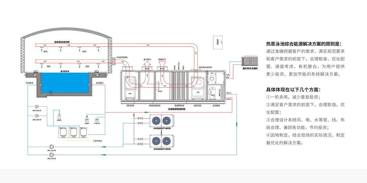 天舒泳池熱泵系統運行無需專人看管,智能控制,全程自動運行,減少人工費用。